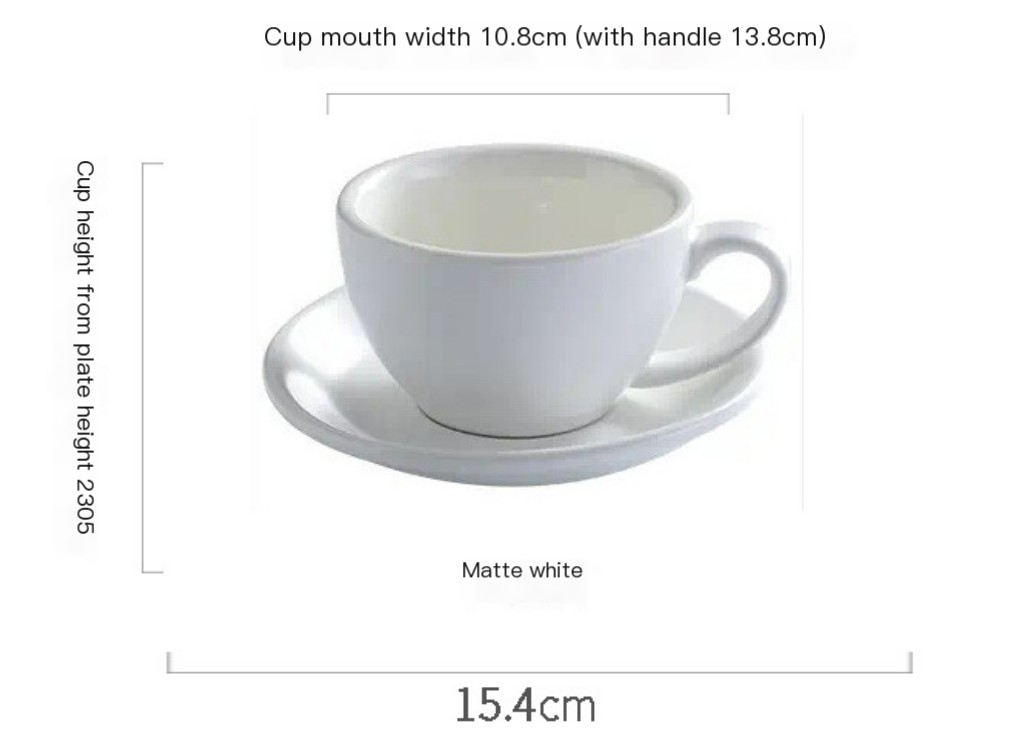 Cada taza, hecha de porcelana de alta calidad, cuenta con una generosa capacidad de 300 ml. Elija entre tres colores elegantes: negro, marrón y cian, para combinar con su estilo o decoración de la cocina. Cada taza viene completa con un platillo a juego, lo que garantiza que sus momentos de café sean elegantes y prácticos.